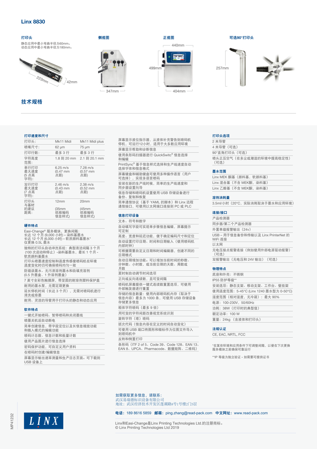 1. Linx 8830 噴碼機最多可打印 3 行,能夠為工業應用 環境提供完美的噴碼解決方案。